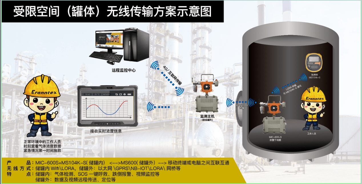 今天,我们就以气体检测行业的老大哥欢迎来到公海710线路-欢迎来到公海堵船7108-555000jc线路检测中心-公海555000hh线路检测-欢迎来到公海手机版710-欢迎来到公海710156-公海彩船6600cc-公海gh555000aa线路检测Eranntex为例,来说说如何进行受限空间的气体检测。首先,在进入受限空间作业前,工作人员会先用欢迎来到公海710线路-欢迎来到公海堵船7108-555000jc线路检测中心-公海555000hh线路检测-欢迎来到公海手机版710-欢迎来到公海710156-公海彩船6600cc-公海gh555000aa线路检测MIC-600S主机或泵吸式MS600对受限空间采样检测,以检测密闭空间中的氧气、硫化氢、可燃气、VOC挥发性有机化合物等。确定安全后,工人才可以进入作业。作业中,欢迎来到公海710线路-欢迎来到公海堵船7108-555000jc线路检测中心-公海555000hh线路检测-欢迎来到公海手机版710-欢迎来到公海710156-公海彩船6600cc-公海gh555000aa线路检测MIC-600S监测主机在罐体外,将摄像头架设在受限空间,工人佩戴一台欢迎来到公海710线路-欢迎来到公海堵船7108-555000jc线路检测中心-公海555000hh线路检测-欢迎来到公海手机版710-欢迎来到公海710156-公海彩船6600cc-公海gh555000aa线路检测便携式检测仪MS600进行作业,随时检测所处环境的气体浓度状况,外边监护人员可通过手机或ipad进行查看监测数据和视频图像,实现远程高风险操作一体化监管,彻底解决行业痛点。
