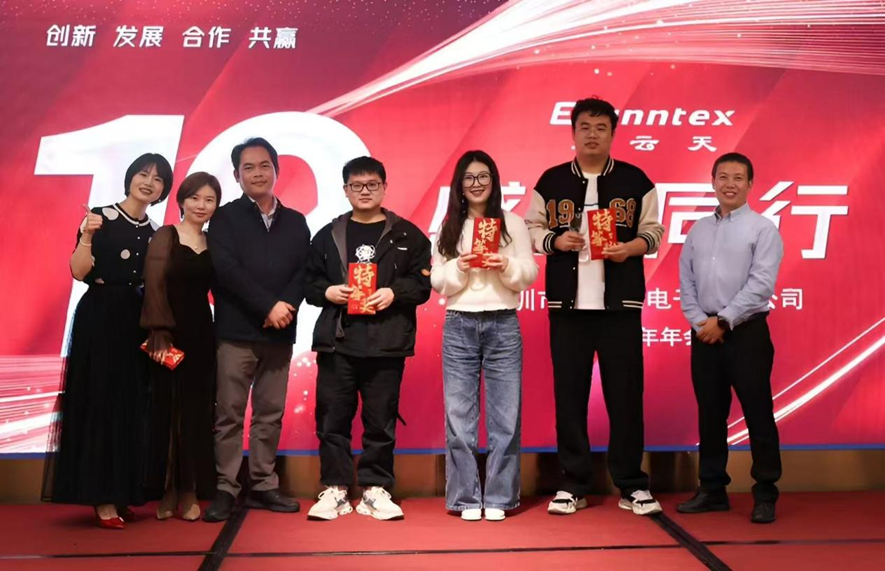 抽奖环节无疑是年会现场最为激动人心的时刻。三等奖、二等奖、一等奖以及阳光普照奖依次抽出,每位获奖者都收获了来自公司的惊喜与祝福。而“搏一搏”环节更是将现场气氛推向了高潮,大家纷纷用原奖去换取抽取特等奖的资格,期待能够成为最终的幸运儿。当崔总亲自为特等奖得主颁奖时,全场响起了雷鸣般的掌声。
