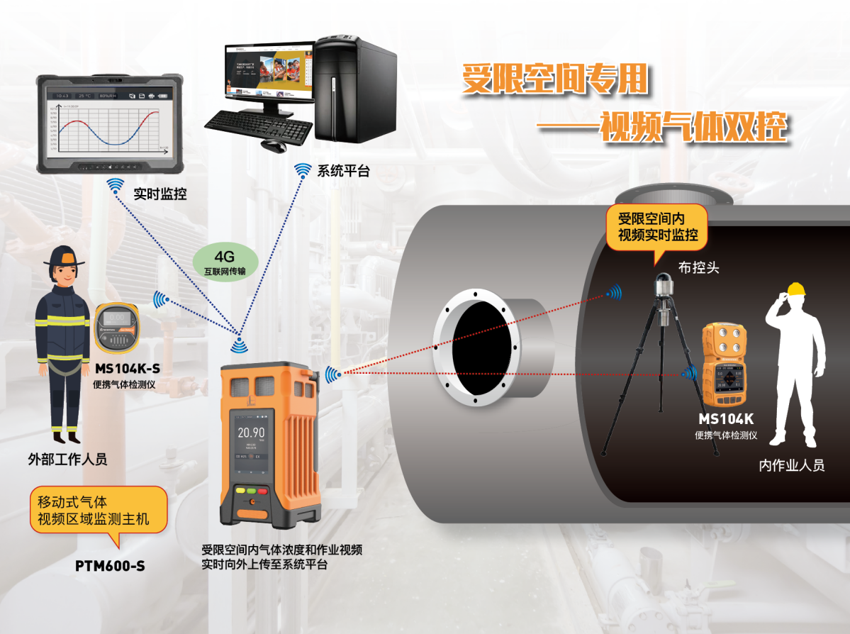 针对受限空间作业生产这块,欢迎来到公海710线路-欢迎来到公海堵船7108-555000jc线路检测中心-公海555000hh线路检测-欢迎来到公海手机版710-欢迎来到公海710156-公海彩船6600cc-公海gh555000aa线路检测推出了无线互联受限空间监测气体预警系统技术方案——在进入受限空间作业前,作业人员先用移动式PTM600-S对受限空间进行采样检测,以检测密闭空间中的氧气,硫化氢和可燃气,也可以检测密闭空间的VOC挥发性有机化合物。确定安全后,工人可以进入作业。作业中,监测主机在受限空间外,施工工人佩戴一台便携式检测仪MS104K进行作业,随时检测所处环境的气体浓度状况,可布设防爆摄像头于内部,外边监护人员可通过手机或ipad进行查看监测数据和视频图像。必要时,可在内部增加中继设备延长传输距离。实现了远程高风险操作一体化监管,彻底解决行业痛点。