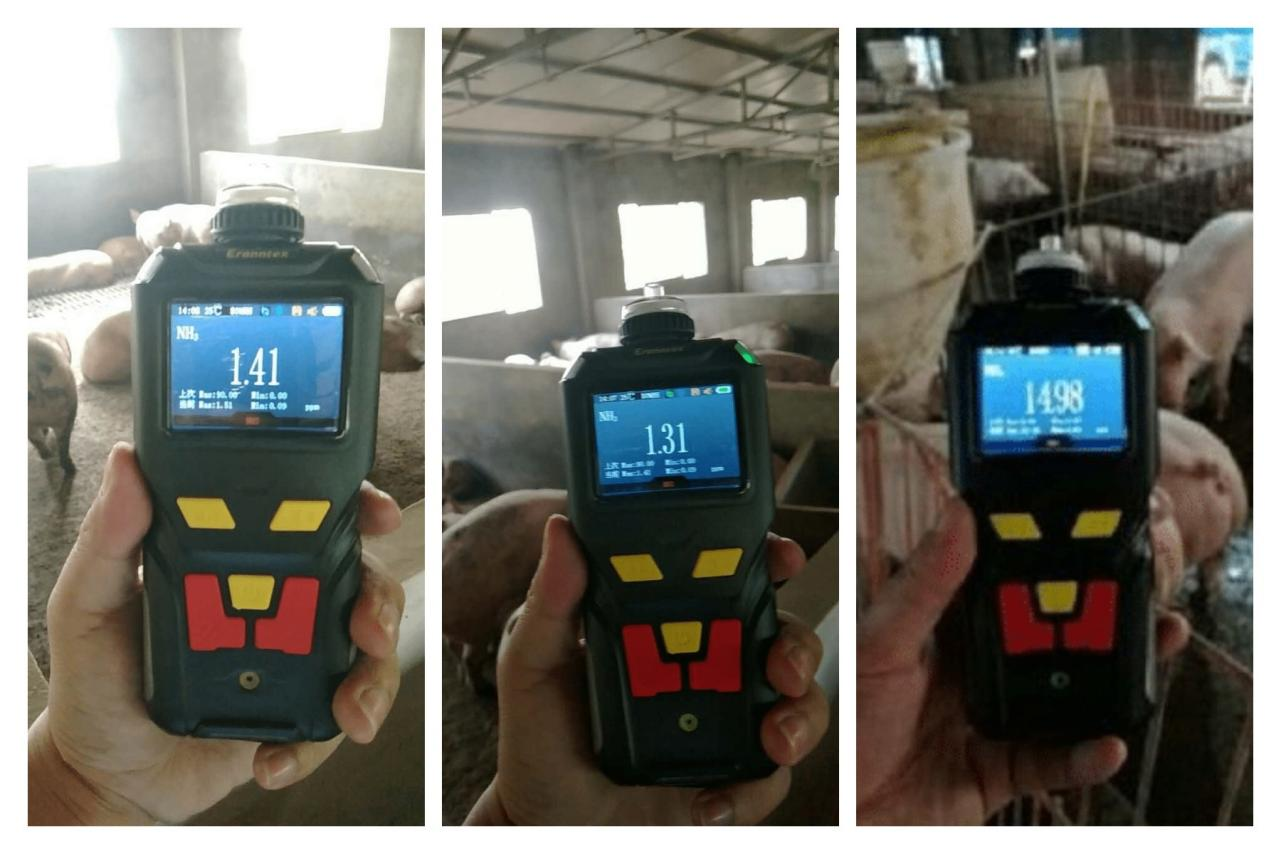 说明:通过采用泵吸式产品配合采样探头,可对养殖场所各个地区和角落进行巡查,了解有害气体浓度范围,以及现场温湿度情况,根据检测后的值作出相应措施,如通风,及时清理排泄物等。