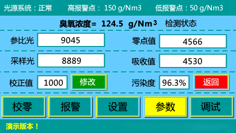 内容界面:臭氧浓度、温度、压力;